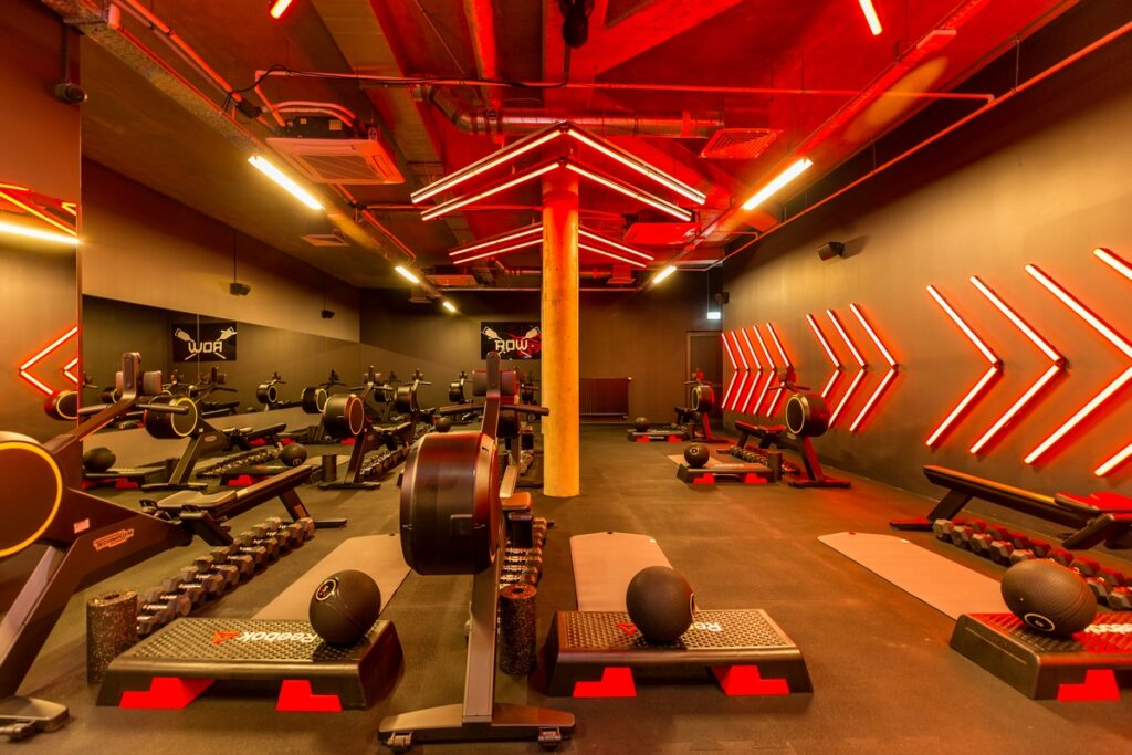 - Strefa ROW: wyposażona w nowoczesne ergometry wioślarskie, idealne do treningu wytrzymałościowego i siłowego. Trening na ergometrze to jedno z najbardziej wszechstronnych ćwiczeń, angażujących praktycznie wszystkie partie mięśniowe. Jest to świetny sposób na poprawę kondycji, wzmocnienie mięśni oraz spalenie kalorii, a także idealna opcja zarówno dla osób początkujących, jak i zaawansowanych sportowców. Trening odbywa się na ergometrach wioślarskich Technogym Skillrow.