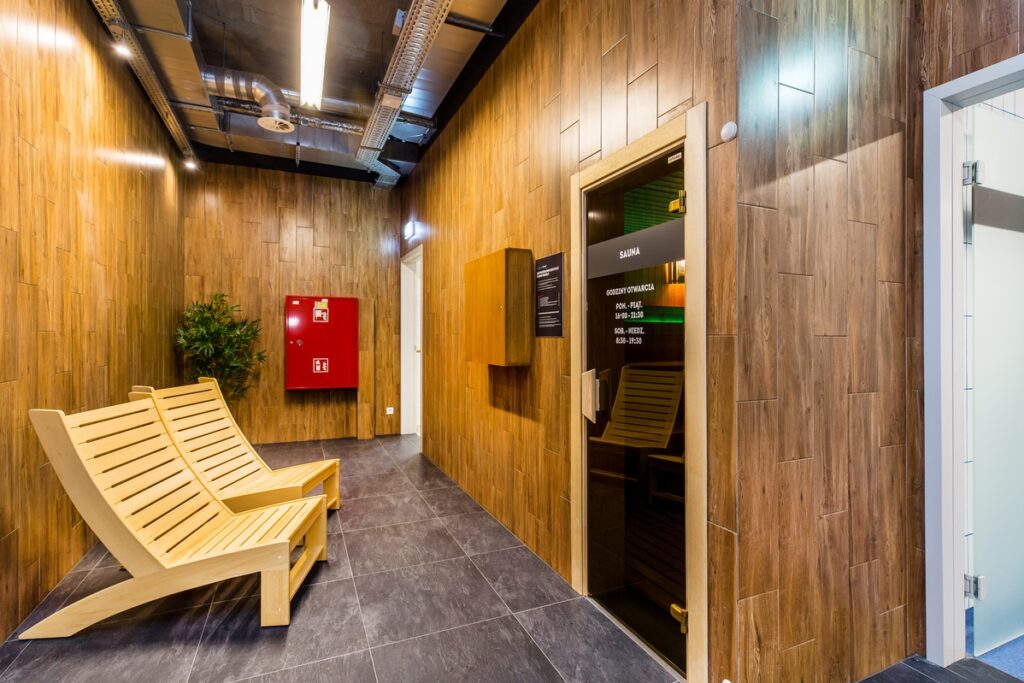 Po intensywnym treningu zachęcamy do skorzystania z naszej strefy relaksu, gdzie znajdziesz komfortową saunę, w której odprężysz się i zregenerujesz ciało.