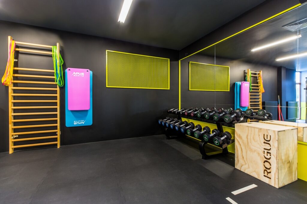 - Strefa funkcjonalna: przestrzeń zaprojektowana z myślą o treningach funkcjonalnych, które pomagają poprawić koordynację, mobilność i siłę. To idealne miejsce do ćwiczeń z wykorzystaniem własnej masy ciała, kettlebells, hantli i wielu innych przyrządów wspierających rozwój sprawności.